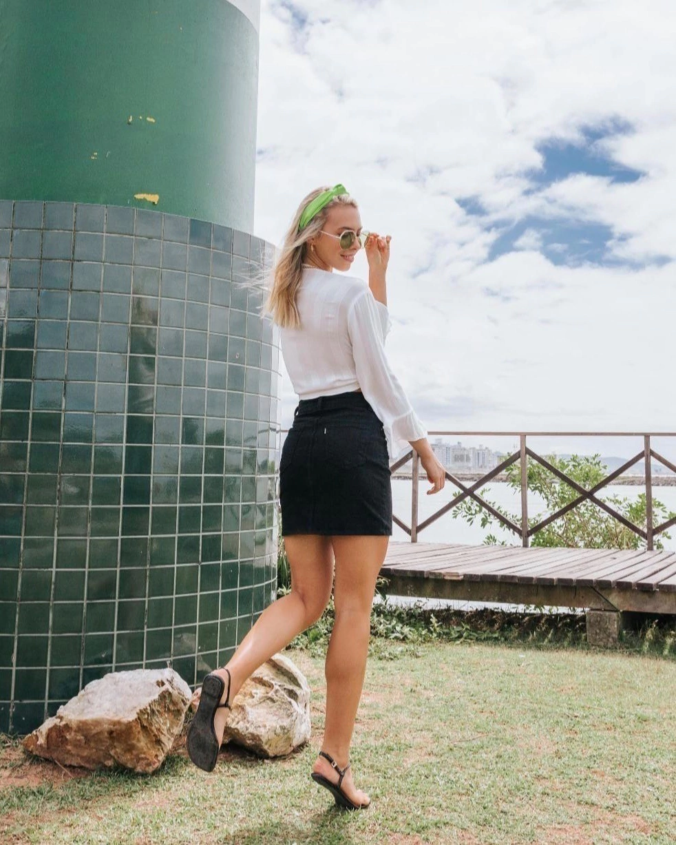 Por exemplo; eu Naddhia fundadora da Amor de Loja, visto 36 de Jeans e esse modelo eu escolhi o tamanho 34 pois eu gosto de saia bem justinha ao corpo!