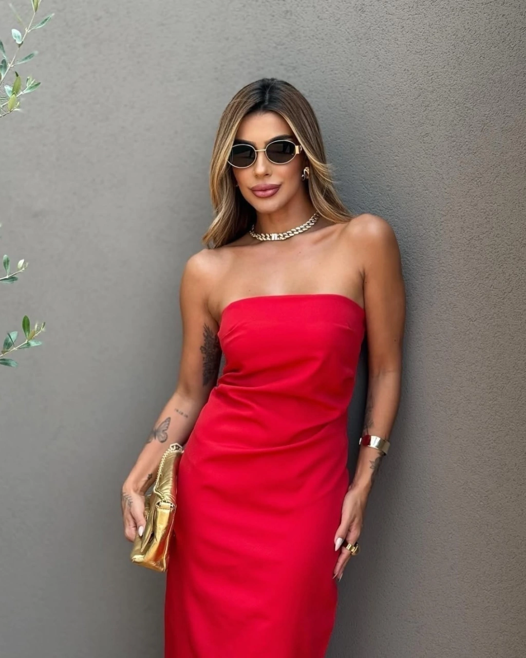 Este vestido mídi em alfaiataria combina elegância e conforto, perfeito para ocasiões especiais.